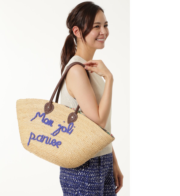 【送料無料】 刺繍したフレンチロゴ可愛らしいカゴバッグです。ハンドル部分には合成皮革を取り入れることで、持ちやすいデザインになっています。遊び心のあるバッグは、スタイリングのアクセントにもぴったりです。リゾートシーンにも最適です。 ヒューマンウーマン/HUMAN WOMAN バッグ|その他