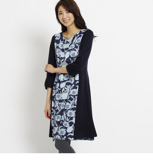 【送料無料】 前身頃に華やかな蔦状のフラワープリントを使い、他はジャージ素材で切り替えた体にやさしくフィットするワンピースです。プリント部分も少し起毛感のある素材を使っていますので暖かみがあり柄もふんわり表現しています。モデル情報:身長170cm B82 W58 H85 着用サイズ:38店舗へのお問い合わせ商品番号:545-53019主に冬に着用いただける商品です。 スーナウーナ/SunaUna SunaUna|ワンピース|ワンピース