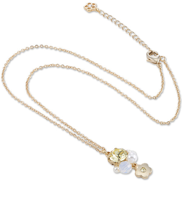 【3000円(税込)以上で送料無料】 キラキラと輝くビジューにデイジーを添えたシリーズ。ほのかに揺れるデイジーが、キュートなポイントです。シルバーにはクリスタル、ゴールドにはライトイエローのストーンを組み合わせました。ビーズと人工パールをプラスした大きめのモチーフで、上品&華やかな雰囲気を演出。ネックレスは、デイジーのエンドチャームがBACKスタイルのアクセントになります。 マリークヮント/MARY QUANT MARY QUANT|アクセサリー ・ヘアアクセサリー|ネックレス