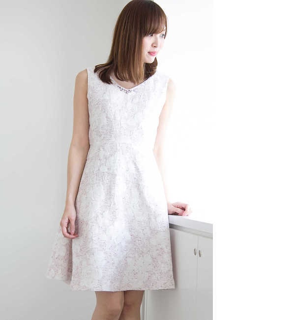 【送料無料】 上品で華のあるローズジャガードワンピース。Vネックに沿ってキラキラ装飾を施したエレガンスな仕上がりです。浮かび上がるような大柄のローズジャガードは、春夏らしい淡いトーンでおさえているので優しげな雰囲気です。少し上でウエストを切替えているので、きれいなフレアーシルエットを描きます。日常からちょっとしたお呼ばれやお食事会まで対応できる1枚です。※裏地付き プロポーションボディドレッシング/PROPORTION BODY DRESSING PROPORTION BODY DRESSING|ワンピース|ワンピース