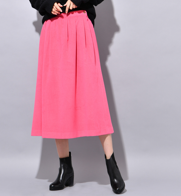【送料無料】 シーズンムードたっぷりの起毛感のある生地と、綺麗なフォルムが魅力のギャザースカートです。程良い着丈と、シンプル&ベーシックなデザインで合わせやすく、着回し力抜群。一枚持っていると重宝するヘビロテ必至のアイテムです。上品な雰囲気のスカートなので、オンオフ問わず様々なシーンでお使い頂けます。 チャオパニック/CIAOPANIC スカート|スカート