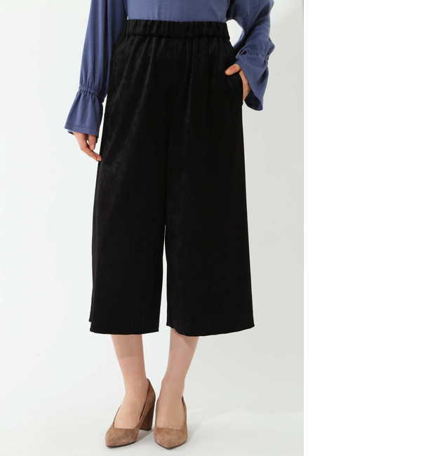 【送料無料】 今シーズンのトレンドでもあるベロア素材。しっとりと上品なトリアセ素材でクロップドワイドパンツを作りました。足元はヒールよりもスニーカーがお勧めです。カジュアルな大人の抜け感を出したスタイリングがお勧めです。ウエストはゴムギャザーで楽に着用出来ます。 ヴァンドゥー・オクトーブル/22 OCTOBRE パンツ|その他
