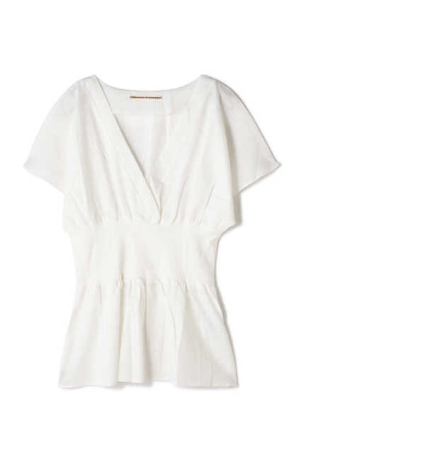 【送料無料】 リブを切り替えたウエストが目を惹くトレンド性の高いブラウスが登場です。シーズンライクな雰囲気を漂わせながら、スタイルアップ効果が期待できるデザイン。大きく開いたネックラインがエレガントな雰囲気です。リブ素材を取り入れているので、締め付け感が無くラクに着られます。タイトスカートやパンツを合わせると、よりシルエットが引き立つ着こなしが楽しめます。 ローズバッド/ROSEBUD ROSE BUD|トップス|シャツ・ブラウス