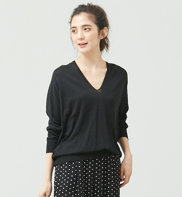 【送料無料】 国内工場のホールガーメント機で編んだニットは、後ろ身頃にボリュームがあり立体的な着こなしに。縫い代が無いので、着用時のシルエットに無駄がなく洗練された印象を与えてくれます。深めのVネックがデコルテをきれいに見せてくれる、シンプルながら優秀なアイテム。ベーシックなベージュやブラックに加えて、コーディネートのポイントになるピンクやサックスのカラーが新鮮です。(ベージュ・ブラック)model:H172・B80・W60・H85 着用サイズ:FREE(ピンク・サックス)model:H166・B80・W59・H86 着用サイズ:FREE ルージュ・ヴィフ ラクレ/Rouge vif la cle Rouge vif|トップス|ニット・セーター
