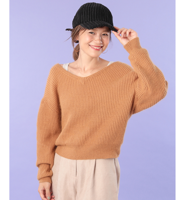 【送料無料】 バックフロントと2WAYで着れるニット。クルーネックと深く開いたツイストのVネックと印象がガラリと変わります。これからのシーズンはシャツとのレイヤードも楽しんでいただける1枚です。アンゴラニットは非常に軽やかで滑らかな肌触りが特徴でとても暖かいです。シーズン間にタンクトップなどのインナーで着たり、冬のアウターのインナーにしたりと長く愛用していただけます。 ミスティック/mystic omekashiline|トップス|ニット・セーター
