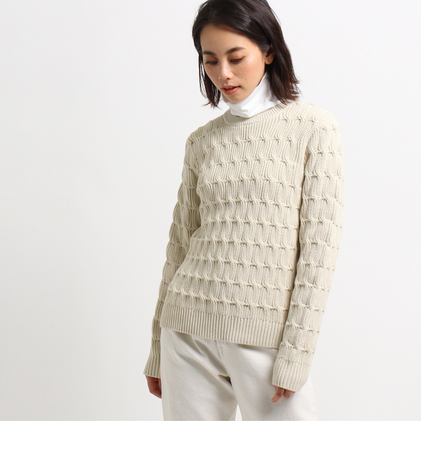 【送料無料】 珍しい総ケーブル模様で幾何学柄のようなモダンなムードをだしたニット。糸自体が特殊な構造で作られており、軽く柔らかいのが特徴です。畦組織の変形でケーブルをつくる事により、柄が普通のケーブル編みよりハッキリ出せています。コーデのポイントになりつつ、ワントーンカラーですからスタイリングのしやすさも上々です。コットンブレンドの着心地も春にうれしいポイント。デニムなどのカジュアル合わせから、センタープレスの入ったキレイ目ボトム合わせまで、ベーシックアイテムとして幅広いコーディネートをお楽しみ頂けます。モデル情報:身長163cm B78 W58 H84 着用サイズ:00(FREE)店舗へのお問い合わせ商品番号:085-14053主に春に着用いただける商品です。 中国製 ドレステリア/DRESSTERIOR DRESSTERIOR|トップス|ニット・セーター