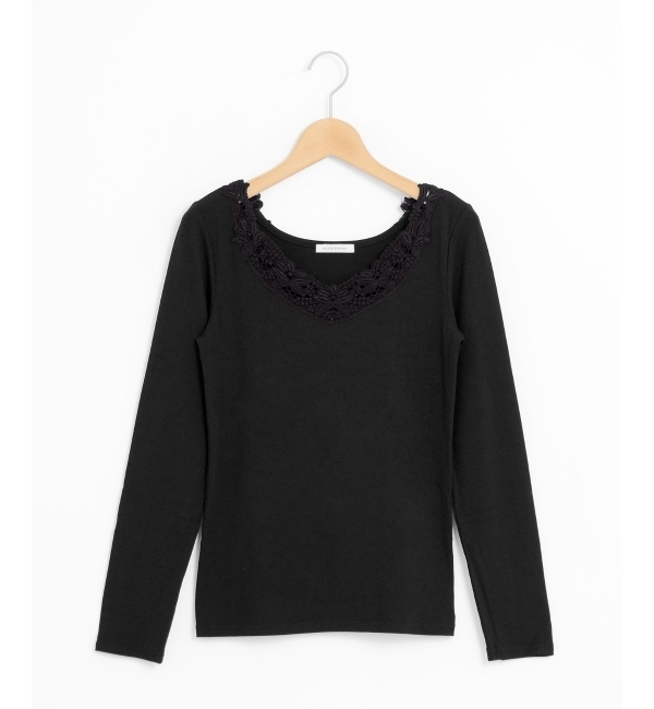 【送料無料】 華やかなモチーフレースがあしらわれた大人フェミニンのプルオーバー♪程よくゆったりめに仕立てられたスリーブに、広めのネックラインがデコルテをキレイに魅せる一枚◎シンプルめなデザインで着まわしやすく、今年トレンドのレースアップシューズに合わせてもおすすめです。 ペルルペッシュ/Perle Peche トップス|Tシャツ・カットソー