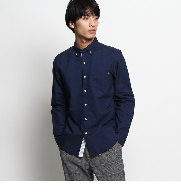 【送料無料】 シャツの定番・オックスフォード生地のボタンダウンシャツ。こちらは第一ボタンやカフスボタン、ポケット、ガジェットにトリコロールを、前立て裏には別布をと、さりげなく遊び心をとりいれた楽しい一枚です。色・柄とりどりに並ぶデザインパレットも着こなしを広げてくれそう。モデル情報:身長178cm B88W72H86 着用サイズ:02(M)店舗へのお問い合わせ商品番号:616-84663主に春に着用いただける商品です。 カンボジア製 ザ ショップ ティーケー/THE SHOP TK THE SHOP TK|トップス|シャツ・ブラウス