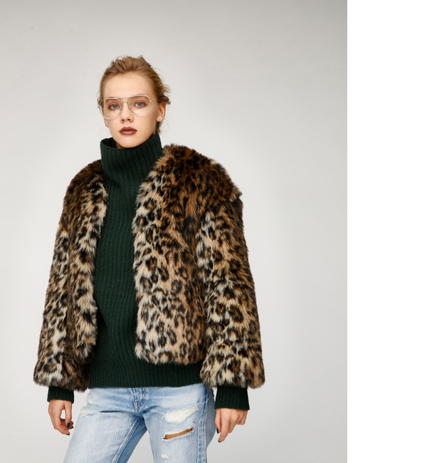 【送料無料】 レオパード柄のファーコートはショート丈にすることで、ボトムスとも合わせやすく、取り入れやすい印象に。ノーカラーデザインと、サテンの裏地もポイント。 マウジー/MOUSSY アウター|ピーコート