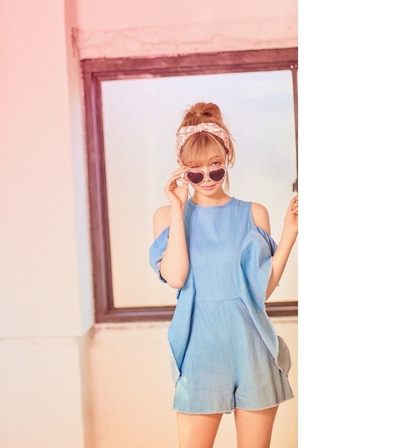 【送料無料】 デニムを甘めのデザインに落とし込んだロンパース。大きいラッフルを全体にあしらって体型カバー効果も。ラッフルと裾はフリンジ始末でヴィンテージ感をプラスしています。 マーブリー/Marblee パンツ|オールインワン