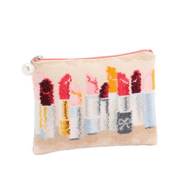 【送料無料】 女性らしいモチーフ、ルージュを全体にあしらった『ルージュボーダー』のフラットポーチです。柔らかなタッチで雰囲気たっぷりに仕上げました。スライダーにはパール調のチャームをトッピング。色鮮やかなカラーリングも視線を集めます。ご自身用はもちろんのこと、ちょっとした贈り物にもおすすめのアイテムです。開口部:ファスナー式内:オープンポケット×1背面柄:あり ラブラリー バイ フェイラー/LOVERARY BY FEILER LOVERARY BY FEILER|小物|ポーチ