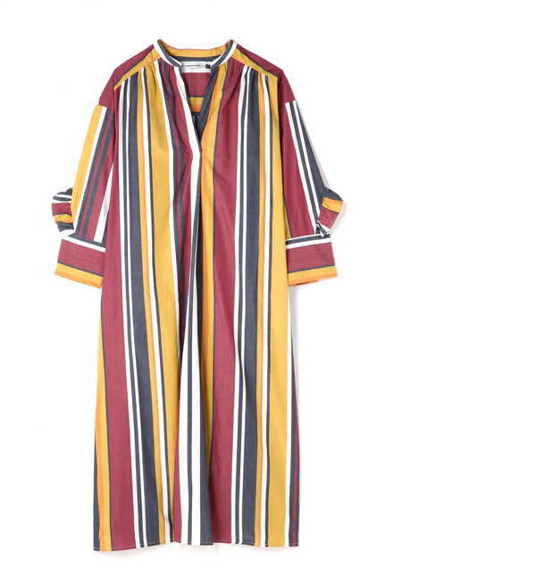 【送料無料】 オリジナルのストライプ柄が目を引くロングワンピース。モードかつ爽やかな表情の一着です。ワイドスリーブとゆったりとしたリラックス感のあるシルエットが今年らしい雰囲気を演出してくれます。一枚ではもちろん、お手持ちのベルトでウエストマークする着こなしもおすすめです。 ローズバッド/ROSEBUD ROSE BUD|ワンピース|ワンピース
