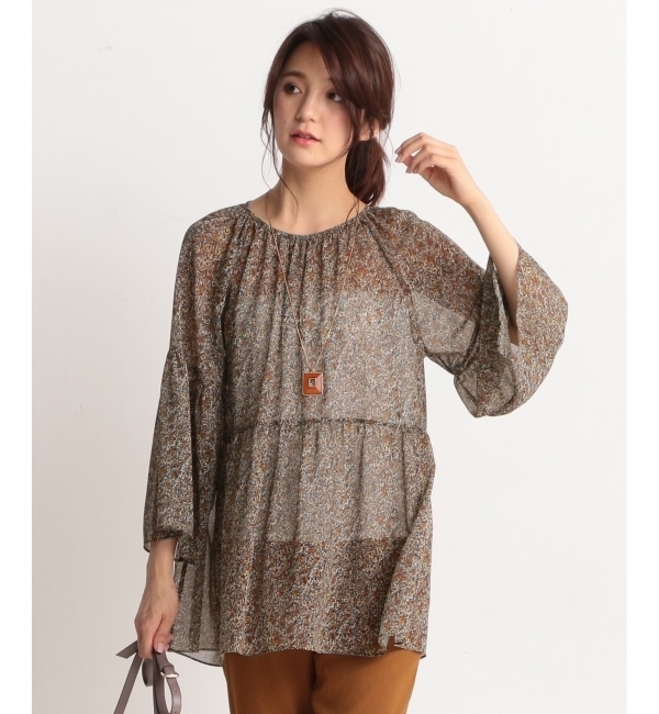 【送料無料】 ノスタルジックな雰囲気を纏う、夏のシフォンブラウス【素材】イタリアのDIVISONE TESSILE社の素材を用いたブラウスです。程よい透け感のシフォンに、落ち着いたトーンの小花柄をプリントしている夏らしく柔らかな素材感の一枚です。【デザイン】ギャザーで分量感を出したノーカラーブラウスです。ひらっとした袖と前後差のついたレングスも今年らしいディティール。ブラウスのボリューム感を楽しんでいただけます。スキニーデニムなどコンパクトな細身ボトムスとのスタイリングがおススメの一枚で着映えするアイテムです。▼プリントシリーズ▼総柄のワンピース(OPWOHA0103)ブラウス(BLWOHA0103)※画像はサンプルを使用している為、実際にお届けする商品と仕様やサイズが異なる場合がございます。中国※生産の都合により素材・原産国が変更になる場合がございます。 ニジュウサンク/23区 23区|トップス|シャツ・ブラウス