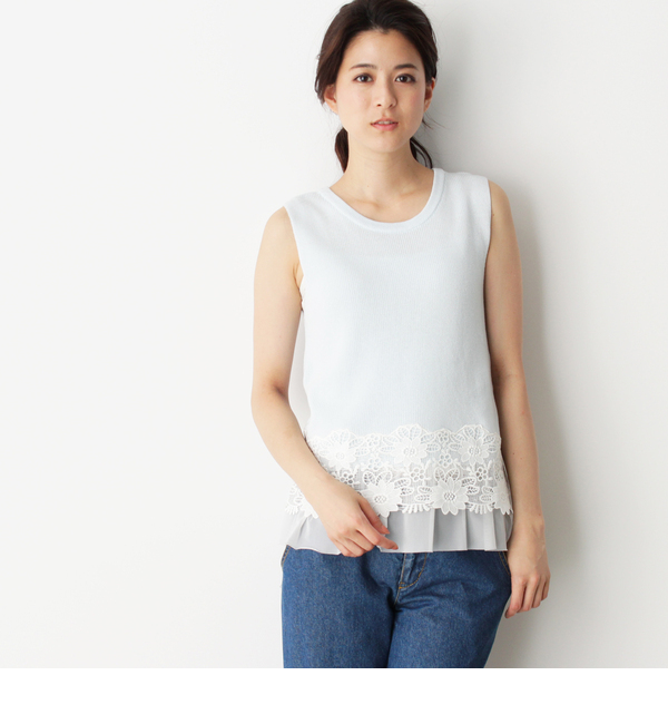 裾レースノースリーブニットプルオーバー