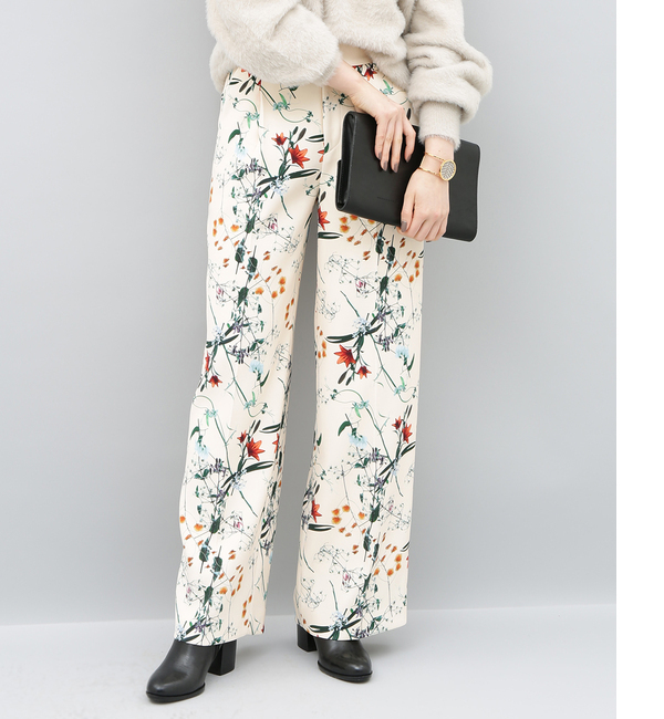 【送料無料】 ADAM ET ROPE'定番人気のセンタープレスワイドパンツに色鮮やかな色彩のフラワープリントが存在感抜群のワイドパンツ。着る人の個性を引き立ててくれる1枚はきっとこの春の主役アイテムとして活躍すること間違いなし。柄が引き立つよう、ハイゲージのニットや無地のブラウスなどトップスで引き算をした大人な組み合わせがオススメ。プリントは本物の生花を使った作品の色を生かすため、インクジェットでプリントしまるで本物のお花が咲いているかのようなリアルな仕上がりに。素材はしっかりとした肉厚なダブルクロスで寒い時期から春先まで安心して着用いただけます。また、しわになりにくい、イージーケア素材なのでお手入れも簡単。明るいカラーのデザインですがベースカラーをスキンベージュにし、汚れが目立ちにくくなるように配慮しています。※柄の配置には個体差があります。※WEB店舗でのご購入は、ノベルティプレゼント対象外となります。予めご了承ください。木村 亜津/ Azu Kimuraフラワーデザイナー、アーティスト。自然物テーマに作品を制作。植物の持っている生物学的な特徴や、視覚的な特徴を切り取って再構築することで、植物という存在が鑑賞者にとって新鮮なものになることを目的に活動している。洗濯の際は、もみ洗いはせず、必ず押し洗いをして下さい。淡色製品の場合は、蛍光増白剤の含まれていない洗剤を使用して下さい。この製品は水洗いで多少縮みます。水洗い後の乾燥機のご使用は避け、自然乾燥して下さい。この製品は着用による摩擦作用でピリングになりやすい性質があります。着用後はブラシで毛並を整え、出来てしまった毛玉は糸を傷つけないように小ばさみや毛玉取り器などで除去して下さい。強い日光や照明に長時間当たりますと、変色しやすくなっておりますので、光の当たる場所に放置せず、暗所で保管するようお願いします。この製品は大変デリケートな生地を使用しています。突起物やアクセサリーなどで生地を引っ掛けないようにご注意下さい。∞-∞-∞-∞-∞-∞-∞-∞-∞-∞-∞-∞-∞-∞-∞-∞-∞-∞-∞-∞-∞※サイズ表は、実物を採寸した実寸です。商品タグのサイズは、メーカー基準サイズとなりますので実寸とは異なります。∞-∞-∞-∞-∞-∞-∞-∞-∞-∞-∞-∞-∞-∞-∞-∞-∞-∞-∞-∞-∞ アダム エ ロペ/ADAM ET ROPE’ ADAM ET ROPE'|パンツ|スラックス
