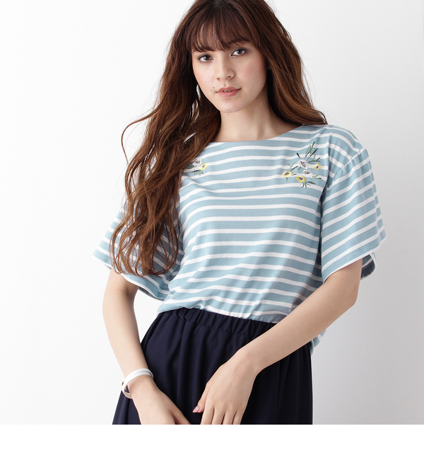 【3000円(税込)以上で送料無料】 爽やかなボーダー柄に前身頃にはフラワー刺繍をあしらったシーズンムード漂うプルオーバー。ふんわりとしたフレアスリーブがトレンドライクな1枚です。パンツと合わせてカジュアルに、スカートと合わせてより女性らしく、様々なシーンでお使いいただけます。モデル情報:身長168cm B75 W60 H87 着用サイズ:02(M)店舗へのお問い合わせ商品番号:768-12360主に夏に着用いただける商品です。 中国製 グローブ/grove grove|トップス|Tシャツ・カットソー