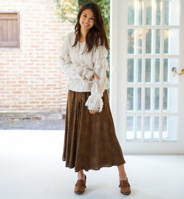 レーヨン平 TRIBAL プリント フレアースカンツ