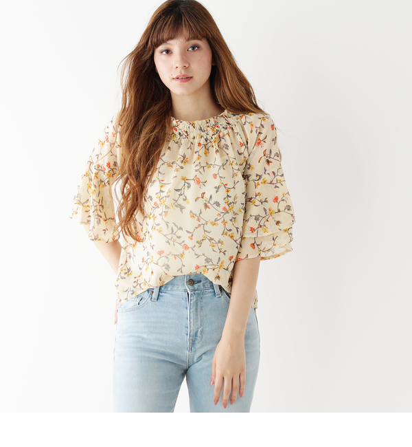 【3000円(税込)以上で送料無料】 透け感とシボ感のある楊柳生地を使用したフラワー柄のブラウス。落ち着いた配色で大人っぽく着こなせるのが嬉しい。ふんわりとしたフレアスリーブや襟元にあしらったシャーリング使いが今年らしい1枚です。ワイドボトムスと合わせた旬なスタイリングがオススメ◎モデル情報:身長168cm B75 W60 H87 着用サイズ:38(M)店舗へのお問い合わせ商品番号:763-83201主に秋に着用いただける商品です。 中国製 ピンクアドベ/pink adobe ピンクアドベ|トップス|シャツ・ブラウス