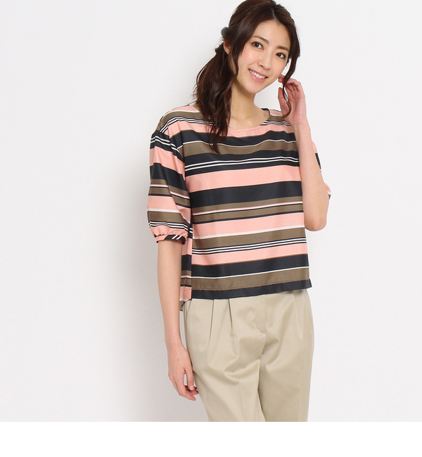 【送料無料】 春夏の代表柄ボーダーを、落ち着きのあるマルチカラーとランダムピッチで大人な表情にアップデートしました。ふわりとした五分袖とドロップショルダーが、上品な女性らしさを演出。さらりと微光沢のある素材感とあいまって、フェミニンにボーダースタイルをお楽しみいただけます。一枚でキマるこの存在感は薄着の季節にぴったり。モデル情報:身長170cm B82 W58 H85 着用サイズ:38店舗へのお問い合わせ商品番号:545-82067主に夏に着用いただける商品です。 日本製 スーナウーナ/SunaUna SunaUna|トップス|シャツ・ブラウス