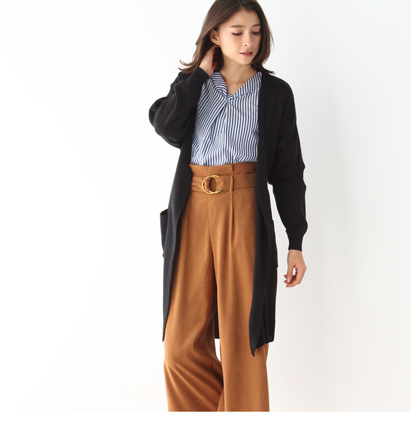 【3000円(税込)以上で送料無料】 フロントの重なりを多くとっているので、袖を通すと程よいボリュームがでるロングカーディガンです。ベルト付きなので前や後ろでキュッと結べばシルエットをアレンジできます。ご自宅で洗えるケアのしやすさも魅力。モデル情報:身長170cm B80 W60 H87 着用サイズ:02(M)店舗へのお問い合わせ商品番号:741-33007主に秋に着用いただける商品です。 中国製 シューラルー/SHOO・LA・RUE DRESKIP|トップス|カーディガン