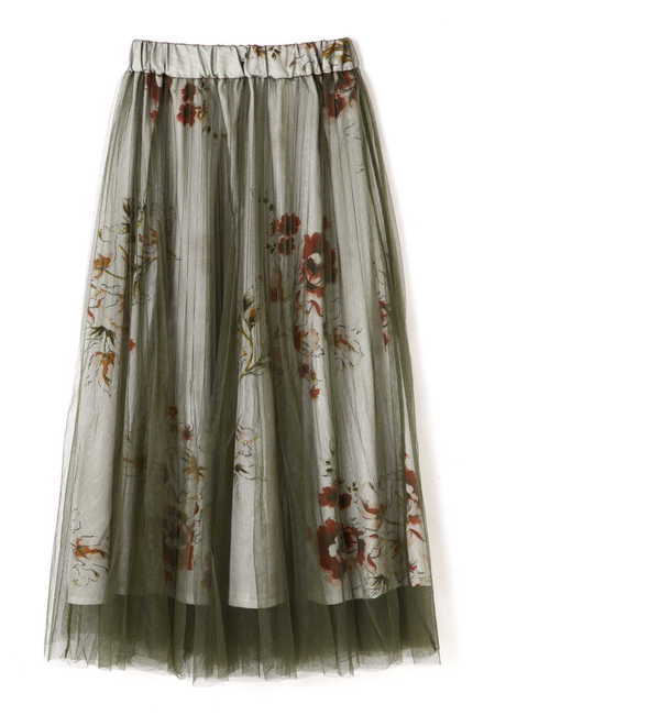 チュール重ね花柄ギャザースカート