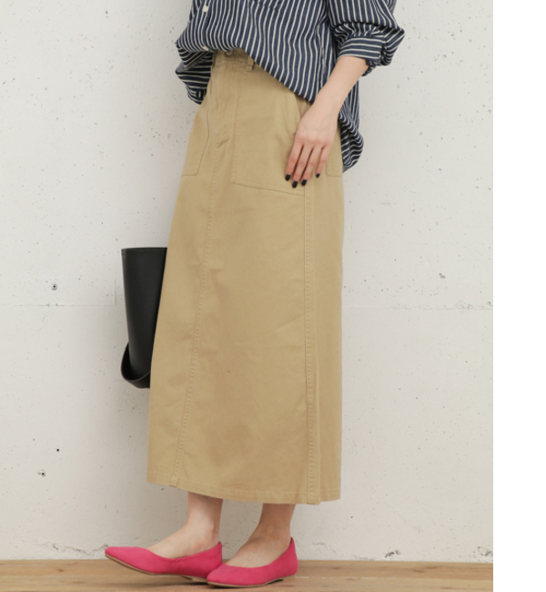 【送料無料】 程好く広がったAラインが美しくレッグラインを美しく見せてくれるロングスカート。パンツの上から縫いつけられたパッチポケットがポイントとなりこなれ感のあるカジュアルスタイリングに。きれいなハリのあるツイル素材を使用しているので固くなくさらりとした着心地です。 アーバンリサーチ/URBAN RESEARCH Sonny Label|スカート|スカート