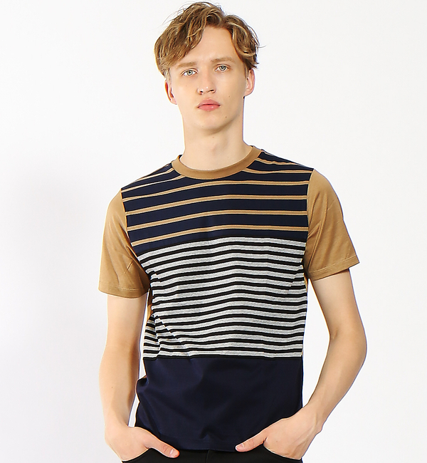 【送料無料】 『オシャレ感のある配色のボーダーTシャツ』ありそうでなった配色のボーダーTシャツ。派手すぎず地味すぎずのバランスの良いデザインでコーディネートにプラスするだけでオシャレ感の出るアイテム。モデル:182cm/C88/W73/H93/着用サイズ46 アバハウス/ABAHOUSE ABAHOUSE|トップス|Tシャツ・カットソー