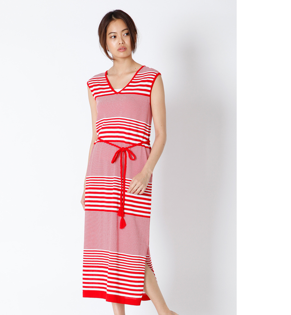【送料無料】 マリンテイストのマルチボーダーワンピ?スです。インパクトのある華やかな仕上がりなので、インナー使いはもちろん、単品使いでもさまになります。カジュアルながらも女性らしい印象で、これからのシーズンのデイリーシーンで大活躍します。・裏地なし・リボンベルト取り外し可 ・ポケット付き ・水洗い可 スーペリアクローゼット/SUPERIOR CLOSET INED|ワンピース|ワンピース