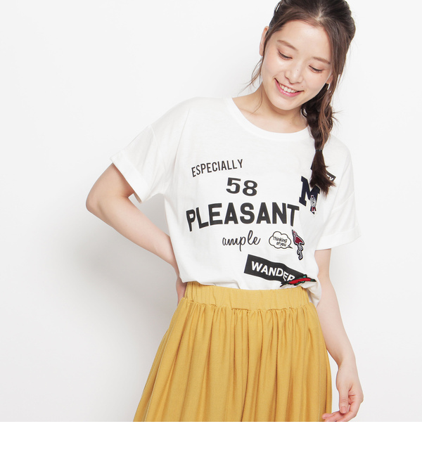 【3000円(税込)以上で送料無料】 フロントにユニークなワッペンをちりばめた、遊び心溢れるデザインのTシャツ。ネックラインはすっきりと開き、ドロップショルダーでリラックスムードを漂わせました。ワイドパンツやミモレ丈スカートとの相性もバッチリです。モデル情報:身長168cm B80 W56 H84 着用サイズ:38(M)店舗へのお問い合わせ商品番号:256-12343主に夏に着用いただける商品です。 中国製 シューラルー/SHOO・LA・RUE CUTIE BLONDE|トップス|Tシャツ・カットソー