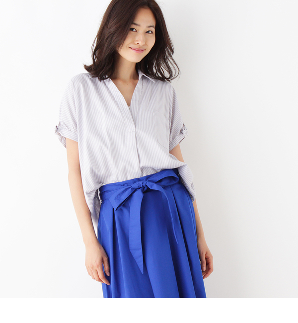 【3000円(税込)以上で送料無料】 落ち感のあるレーヨン混の素材を使用したスキッパーブラウス。袖口にあしらった結びリボンが大人可愛いアクセントに。分量感のあるドルマンシルエットが今年らしいです。これ1枚で旬な着こなしを演出してくれるアイテム。モデル情報:身長169cm B80 W60 H85 着用サイズ:02(M)店舗へのお問い合わせ商品番号:741-82028主に夏に着用いただける商品です。 中国製 シューラルー/SHOO・LA・RUE DRESKIP|トップス|シャツ・ブラウス