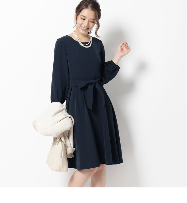 【送料無料】 合わせアウターによってセレモニーにもお呼ばれスタイルにも変身できる万能ワンピース。ハイウエストからの切り替えリボンで大人可愛いスタイリングが叶います。ふんわりとしたエアリーなデザインは上品見えもバッチリ。ジャケットを重ねやすい素材感がポイントです。モデル情報:身長168cm B80 W56 H84 着用サイズ:02(M)■こちらの商品はWEB先行販売となります。店舗へのお問い合わせ商品番号:768-54008主に春に着用いただける商品です。 グローブ/grove grove|ワンピース|ワンピース