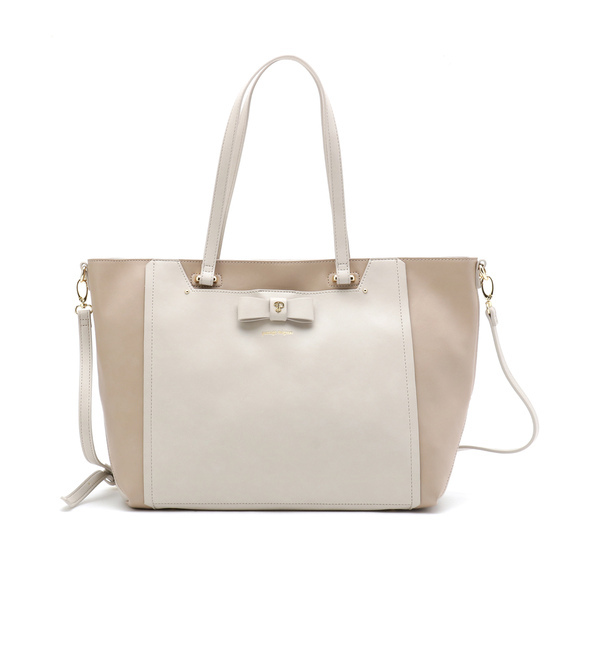 【送料無料】 アウトポケットにあしらわれたリボンがさりげないフェミニンを印象づけるトートバッグ。ハンドルが長めで、手持ちでも肩がけでも持ちやすいのが魅力です。開口部ファスナー付きで、荷物をたっぷり入れても中身をしっかりガードできるのがうれしいポイント。ショルダーストラップを取り付ければクロスがけも可能です。外側ポケット×1、内側ポケット×2【A4ファイル収納可】店舗へのお問い合わせ商品番号:C95-04097 中国製 パサージュ ミニョン/passage mignon passage mignon|バッグ|ショルダー・メッセンジャー