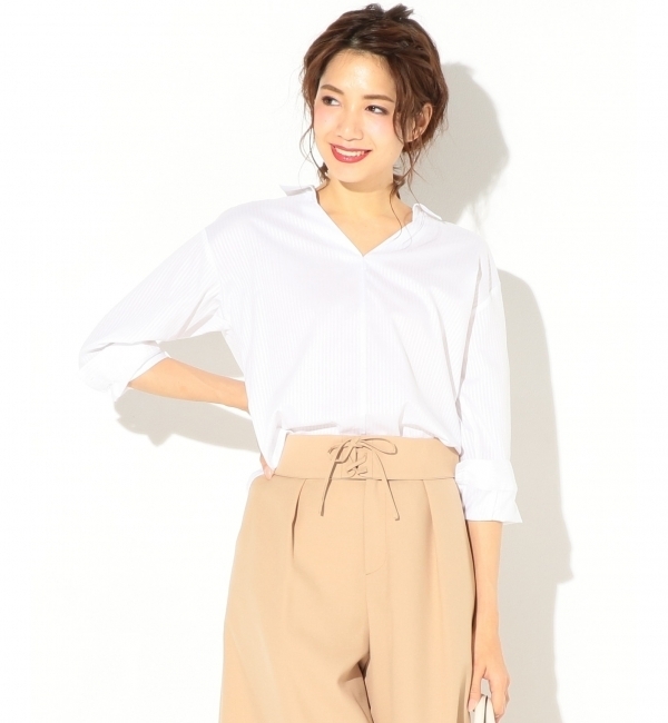 【送料無料】 インしていなくてもイン見えができる!すっきり着こなしが叶うブラウスです■デザインオフボディなシルエット、抜け感のある衿まわりや脇タックが特徴のデザインです。さらに前裾についているタブと前中心内側の釦を留めることで前裾がバルーン状になり、ウエストインしているようにも着られる2WAYで着こなせるブラウス。ボトムスに合わせて着こなしを選べるので幅広く使えます。■素材ヨコ糸にテンセルを使用したソフトな風合いときれいな光沢感が特徴のany SiS定番の先染ストライプ素材を使用しました。程よいきれいな光沢感なので、キレイめにもカジュアルにも着こなせる素材になっています。※洗濯機で洗えます※商品画像はサンプルを使用しているため、色味やサイズ等の仕様に変更がある場合がございますので、予めご了承ください。中国※生産の都合により素材・原産国が変更になる場合がございます。 エニィスィス/any SiS any SiS|トップス|シャツ・ブラウス