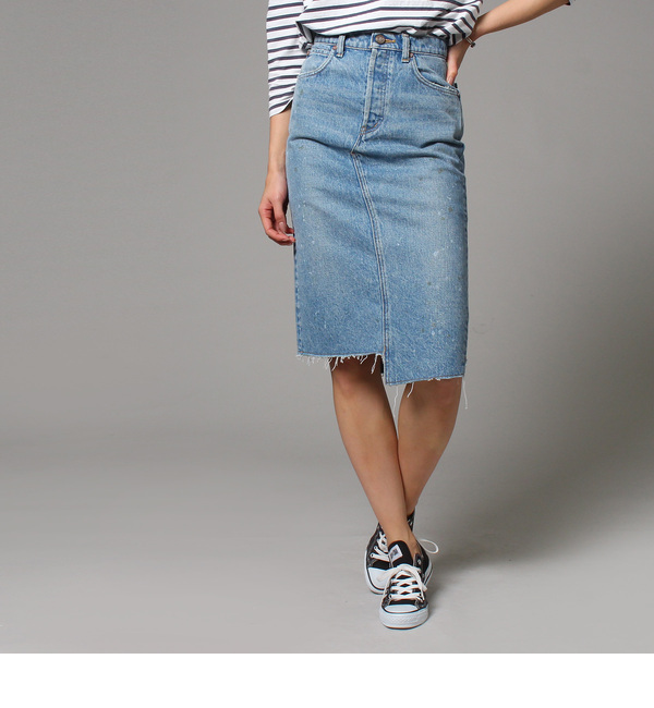 【送料無料】 【JET LOSANGELES】14.75OZのヘビーオンスデニムを使用した、ヴィンテージライクな女性らしいタイトスカート。裾はカットオフされたトレンド感のあるデザインで、アシンメトリーなヘムラインがアクセントになっています。前開き部分はファスナーではなく、ボタンフライにして、細部にまでこだわりの詰まった仕様に。程よくハイウエストなシルエットで、トップスをインしてもバランス良く着こなせます。モデル情報:身長170cm B80 W60 H87 着用サイズ:04(M)店舗へのお問い合わせ商品番号:C80-74002主に春に着用いただける商品です。 ジェット/JET JET|スカート|スカート