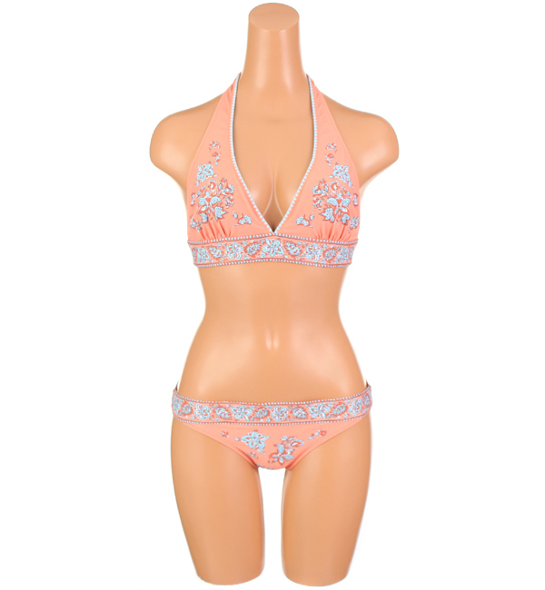 【送料無料】 フォークロアファッションのエッセンスをデザインに落とし込んだボタニカル柄ビキニです。ブラトップは、どんなバストでもきれいに見せてくれるVネックのホルターネック型。アンダーベルトはバックで2本のストラップに分かれています。見せインナーとして活用するのもおすすめです。 サンアイミズギラクエン/三愛水着楽園 水着・スポーツ|ビキニ