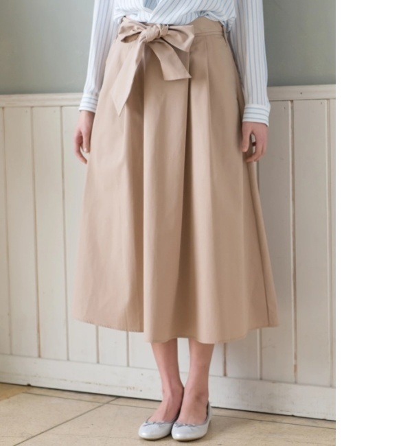 【3000円(税込)以上で送料無料】 タックをあしらった立体的なフォルムがレディスタイルを叶える、スキスカロングスカート。楽ちんなゴムギャザーウエストを隠すようにリボンベルトをマークすれば、ラフさが軽減されオシャレ度も急上昇します。ハリ感のあるTCツイル素材で仕立てているので、シンプルだけどコーディネートを上品で華やかに盛り上げてくれる、オンオフ問わず活躍するひと品です。 アースミュージックアンドエコロジー/earth music&ecology earth music&ecology|スカート|スカート