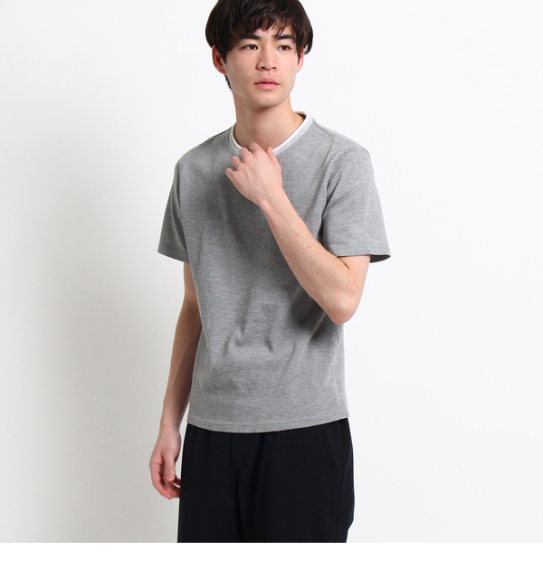 【送料無料】 表面感のある織地が特徴の半袖Tシャツ。ネックラインを配色にし、メリハリのあるアクセントをプラス。ベーシックなサイジングで一枚着としてはもちろん、シャツやジャケットのインナーに合わせてもポイントになるアイテムです。モデル情報:身長177cm B83W72H88 着用サイズ:02(M)店舗へのお問い合わせ商品番号:616-34635主に夏に着用いただける商品です。 中国製 ザ ショップ ティーケー/THE SHOP TK THE SHOP TK|トップス|Tシャツ・カットソー