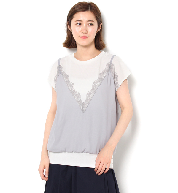 【送料無料】 キャミソールをドッキングした重ね着風Tシャツ。春にご好評いただいたスウェット素材のTシャツバージョンです ! ライチ/ライチ neigh|トップス|Tシャツ・カットソー