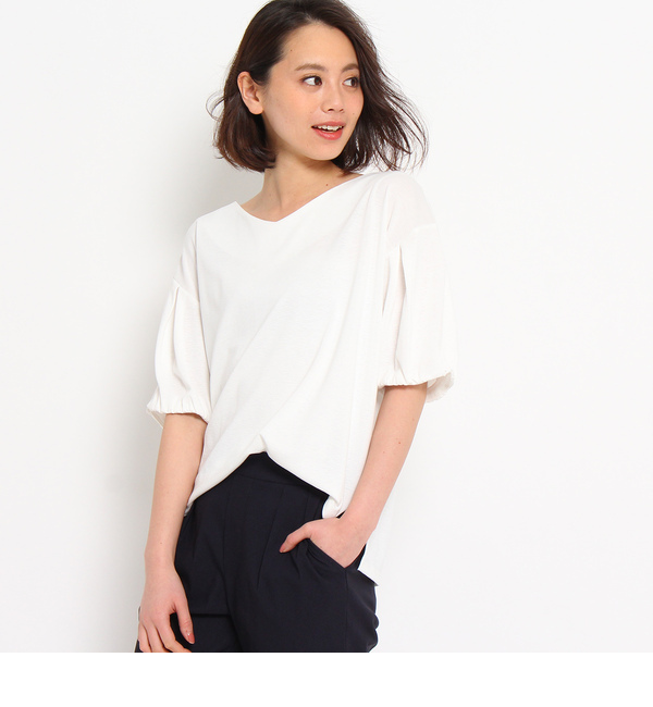 【3000円(税込)以上で送料無料】 背中のDカンを使ったベルトがポイントのデザインカットソー。Dカンは縫い留めてあるので、抜ける心配なく着ていただけます。背中は開きすぎず、表面感のある薄手のリップル生地を使っているので、大人っぽく着られます。袖はタックが入って少し甘い印象です。モデル情報:身長163cm B78 W58 H84 着用サイズ:12(M)店舗へのお問い合わせ商品番号:040-12533主に夏に着用いただける商品です。 ザ ショップ ティーケー/THE SHOP TK THE SHOP TK|トップス|Tシャツ・カットソー