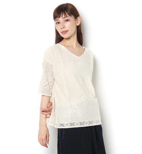 【3000円(税込)以上で送料無料】 繊細で大人な印象のレースプルオーバー。ワイドなフレアの袖が今年らしい印象で、トレンドの透け感をいかしたレイヤードスタイルにお勧めです。デニムと相性が良いのはもちろん、多彩なテイストで着回せるスタイリング力の高さも自慢です。 テチチ/Te chichi Lugnoncure|トップス|シャツ・ブラウス