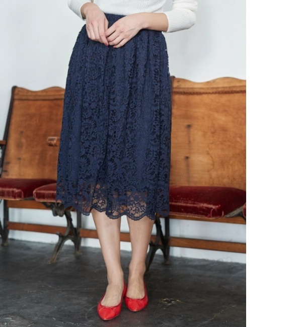 【送料無料】 繊細なレースで、品良く仕立てた洗練レディなフレアースカートです。しなやかにゆれるドレープシルエットがフェミニンさを演出◎シンプルなルックスで、合わせるアイテム次第でマニッシュにもフェミニンにも着回しの利く、スタイリング力の高さも嬉しいポイントです。 アースミュージックアンドエコロジー/earth music&ecology earth music&ecology|スカート|スカート