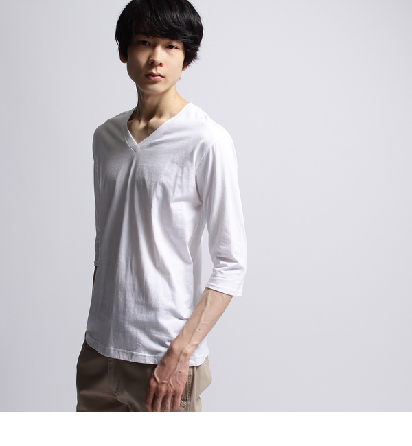 【3000円(税込)以上で送料無料】 定番の30コーマ天竺VネックTシャツが、マイナーチェンジ&プライスダウン!身頃やアームホール、着丈などを改善し、体のラインを綺麗に見せるシルエットにこだわって仕上げました。手元がもたつかないスマートな7分袖が決め手。店舗へのお問い合わせ商品番号:223-110481年を通じて着用いただける商品です。中国製 ベース ステーション/BASE STATION BASESTATION|トップス|Tシャツ・カットソー