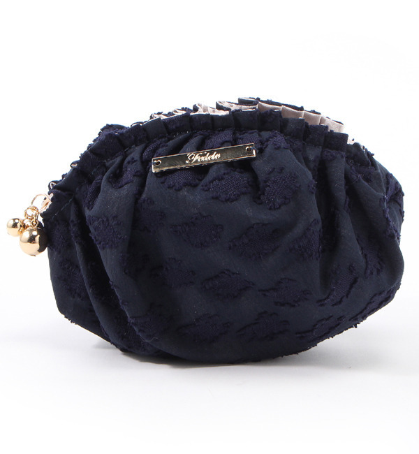 【3000円(税込)以上で送料無料】 柔らかいシフォン生地を重ねたシリーズは透け感がポイント。ゴールドのボールがアクセントに。 メランジェ マガザン/Melanger Magasin 小物|ポーチ