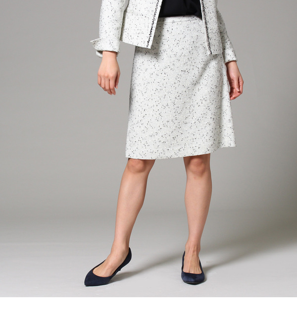 【送料無料】 表情のあるツイード生地をすっきりシルエットで仕上げました。ほんのりと織り込んだラメ糸が角度で柔らかな光を宿し、上品さの中に女性らしさを香らせます。生地はツイードだからと膨らみすぎない程よい肉厚感。季節をまたいで登板させやすく、デイリーからオフィス、セレモニーまでシーン多彩に活躍の予感です。こちらの商品はセットアップでご利用いただけます。(画面左上の検索タブで番号検索いただけます)ジャケット:検索番号153-44816スカート:153-74816※セットアップでご購入頂く場合カラーナンバーを合わせてご注文下さい。サイズ違いの商品もご用意しております。R:153-74116モデル情報:身長166cm B80 W59 H86 着用サイズ:02店舗へのお問い合わせ商品番号:153-74816主に春に着用いただける商品です。 日本製 アンタイトル/UNTITLED UNTITLED|スカート|スカート