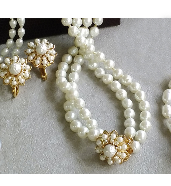 【送料無料】 アンティークな雰囲気ただようパールネックレス。デコルテにぴったりサイズの2連ネックレスは首元のつまったお洋服とあわせてもバランスよく仕上げてくれます。ダリアのお花をイメージしたモチーフが横にくるように着けても素敵!結婚式やお食事会などの特別なシーンに華を添えてくれますよ。※太陽光は変色の原因となりますので、直射日光の当たらない場所での保管をお願い致します。 ノワール ド プーペ /NOIR DE POUPEE アクセサリー ・ヘアアクセサリー|ネックレス