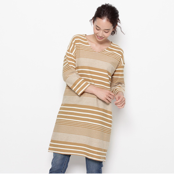 【3000円(税込)以上で送料無料】 タック織りで凹凸感のあるマルチボーダー生地を使用した涼しげなワンピース。ゆったりとしたドロップショルダーに前後Vネックがヌケ感のある着こなしを演出。1枚でそのまま着ても、パンツと合わせてチュニックとして着るのもオススメです◎モデル情報:身長166cm B80 W59 H86 着用サイズ:02(M)店舗へのお問い合わせ商品番号:540-52023主に夏に着用いただける商品です。 中国製 サンカンシオン/3can4on 3can4on|ワンピース|ワンピース