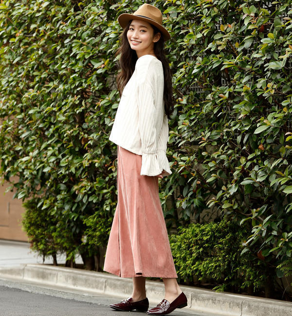 【送料無料】 これからの季節にぴったりな、フェイクスウェードのロングスカートです。トレンド顔なフロントボタンは、裾部分のボタンをなくすことでスリット風にデザインしました。切り替えを持たせたハイウエストで、トップスINもすっきりと決まるのもポイントです。 レイカズン/RAY CASSIN レイカズン|スカート|フレア