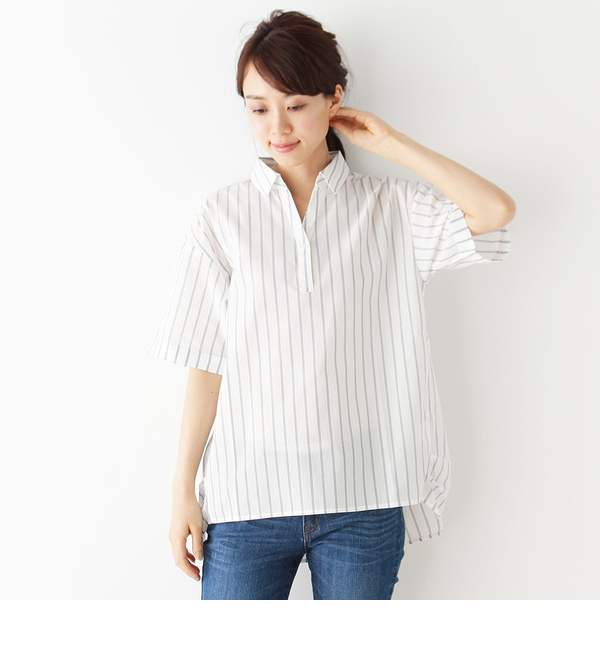 【3000円(税込)以上で送料無料】 両サイドの裾付近にタックをあしらった半袖シャツ。襟付きのシンプルなデザインは、きちんと感もありつつ爽やかな印象で暑い季節に活躍する一枚となります。イン・アウトどちらでも着られるので、ボトム選びにも迷いません。モデル情報:身長165cm B80 W59 H86 着用サイズ:02(M)店舗へのお問い合わせ商品番号:C62-83007主に秋に着用いただける商品です。 中国製 シューラルー/SHOO・LA・RUE SHOO・LA・RUE|トップス|シャツ・ブラウス