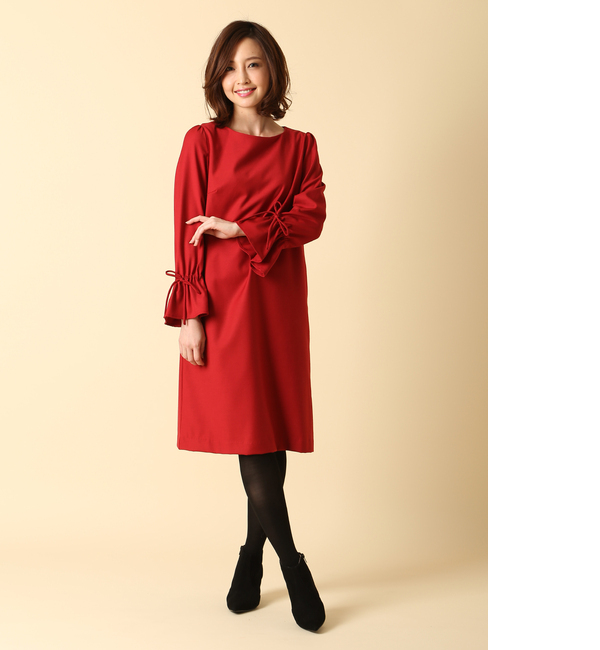 ウールMIXビエラリボンスリーブワンピース