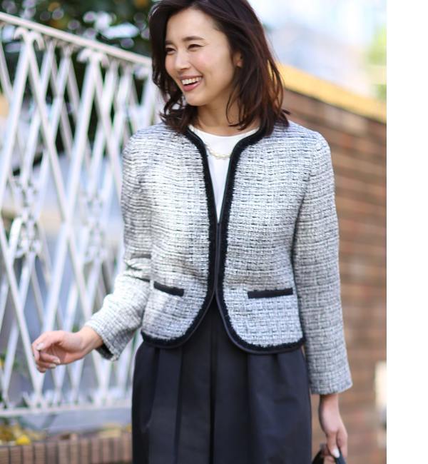 上品なツィード素材がコーディネートをワンランク格上げしてくれるジャケット。ノーカラーで顔周りのスッキリとした印象を与えてくれる、今季のトレンドを押さえたこだわりのデザインです。同素材のスカートと合わせてセットアップとしても着用して頂けるおすすめの一着です。・裏地あり スーペリアクローゼット/SUPERIOR CLOSET 7-IDconcept.|ジャケット・スーツ|ノーカラージャケット